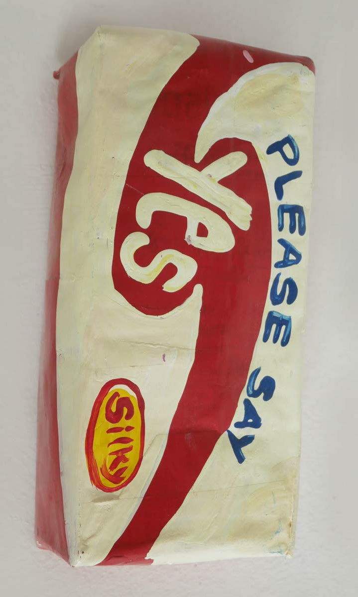 Try me, Multiple aus Pappmaché, Acryl, 24 cm 12 cm 4 cm, Teil der "Späti" Installation