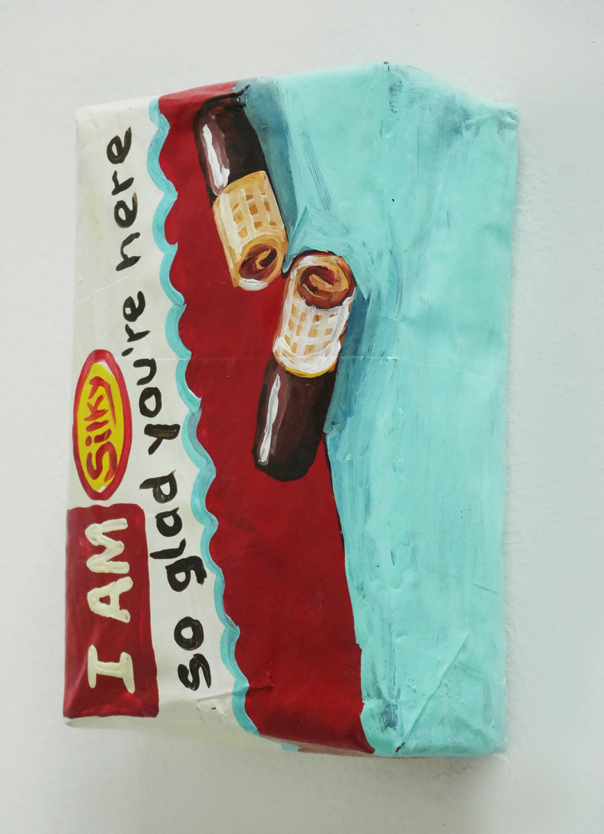 I am so glad, that you're here, Multiple aus Pappmaché, Acryl, 13cm * 20 cm * 6 cm, Teil der "Späti" Installation
